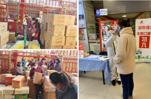 團員們迅速組建了志愿者服務隊,先后成立“卸貨小組”“生鮮幫扶隊”“款臺疏通隊”“疫情控制小組”四支隊伍,有序開展各項志愿服務工作。在每天的配送車卸貨區,清晨超市生鮮上貨區,繁忙的超市款臺前,各個需要消殺的通道內,入口體溫測量處,都能看到團員志愿者們的身影。他們始終堅守在抗擊疫情的一線,為保障民生、共渡難關發揮自己的光和熱。