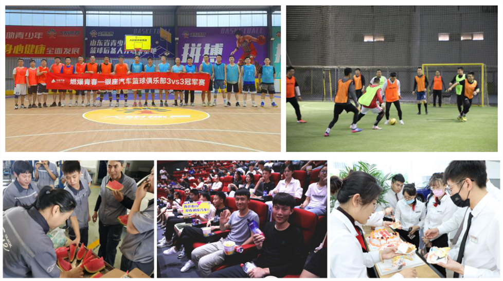 銀座汽車工會為售后車間和項目工地等高溫崗位員工送上冰爽解渴的瓜果及飲料、冰糖綠豆湯等飲品,并在高溫天氣時免費(fèi)供應(yīng)雪糕;為夏日車展現(xiàn)場拼搏的銷售顧問貼心準(zhǔn)備潤喉糖、冰咖啡、堅果禮包、電動牙刷、耳機(jī)等能量禮包,還專門定制了可樂和精美午餐,讓員工切實感受到公司的關(guān)懷;舉辦夏日足球賽、籃球賽、觀影活動和集體生日會,讓員工釋放激情、感悟人生、傾聽祝福。