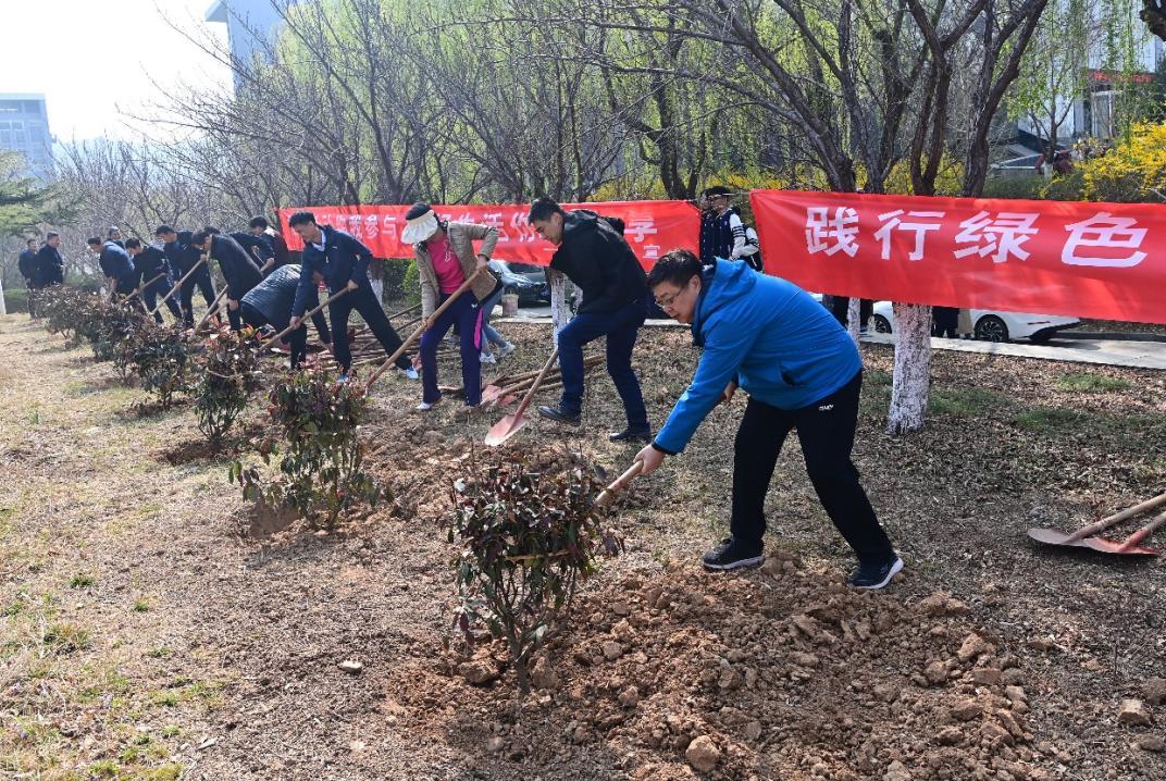 活動中,廣大師生熱情高漲,有的揮锨挖坑、有的扶樹填土、有的提水澆灌,大家通力協作,共同栽下一株株樹苗,用實際行動踐行綠色發展理念。