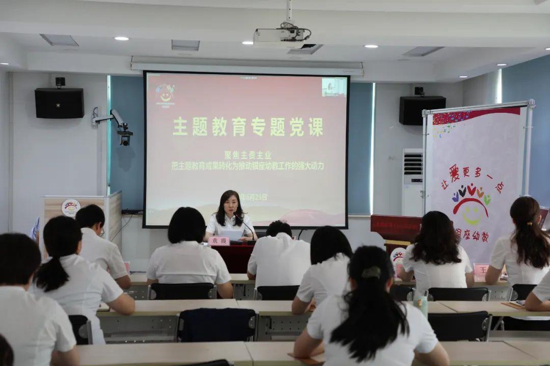 為扎實開展學習貫徹習近平新時代中國特色社會主義思想主題教育,6月25日,銀座幼教黨委書記、董事長袁霞以《聚焦主責主業(yè) 把主題教育成果轉化為推動銀座幼教工作的強大動力》為題,為全體黨員講授主題教育專題黨課。