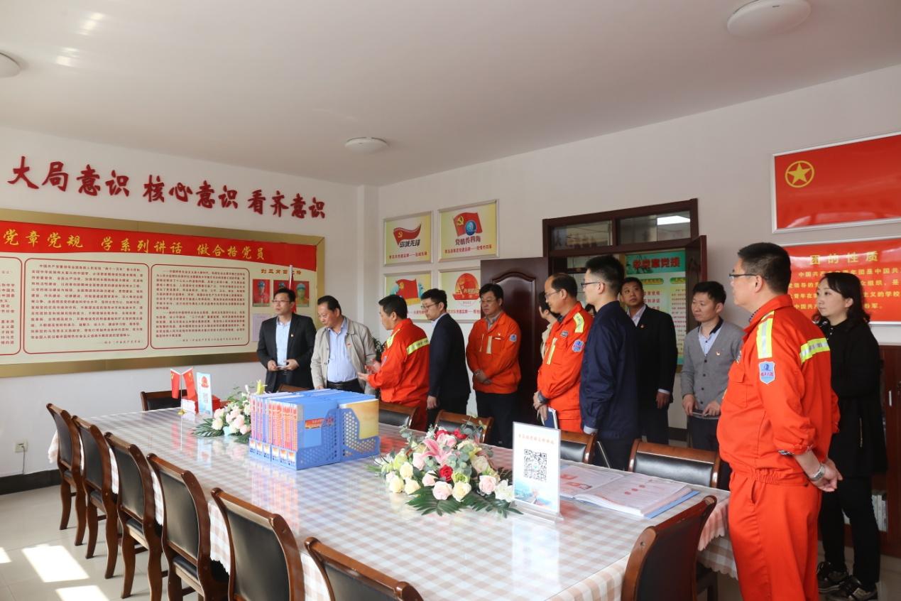 在青島港,考察組走進(jìn)大港分公司固機(jī)大隊(duì)班組黨團(tuán)活動(dòng)室、班組實(shí)作培訓(xùn)室、主管工作室和班組學(xué)習(xí)室,詳細(xì)了解并學(xué)習(xí)了黨建工作建設(shè)開(kāi)展和企業(yè)文化建設(shè)情況。