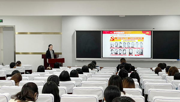 孟朝用一副“中共一大會址”圖片帶領全體師生重溫了中國共產黨成立的歷史過程,從“夢開始的地方”“夢想照進現實”“不忘初心擔使命”3個方面介紹了中共一大的召開、中共一大在中國革命歷史進程中的重要地位和歷史貢獻。