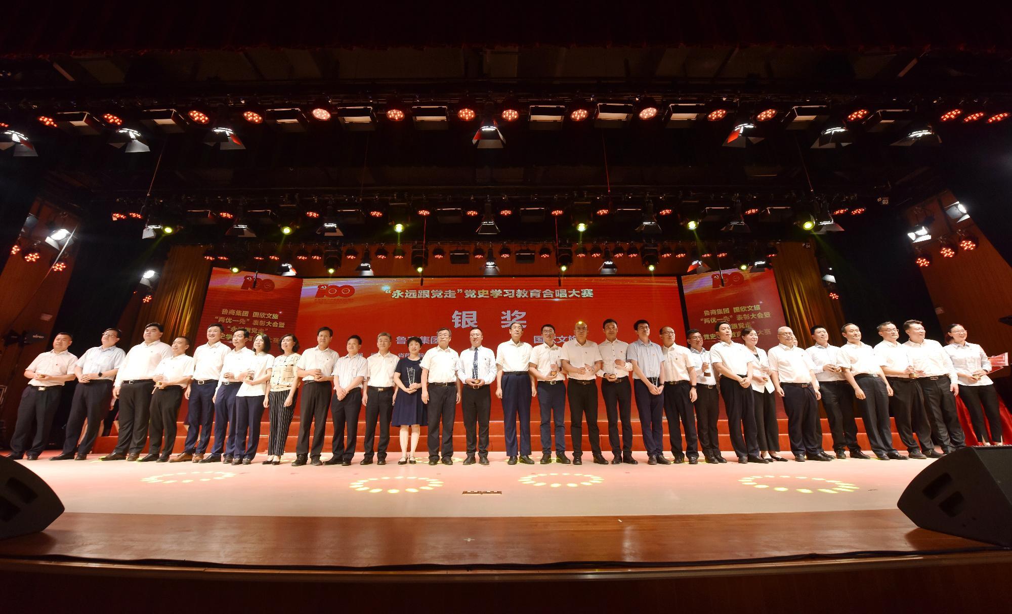 在隨后舉行的“永遠跟黨走”黨史學習教育合唱大賽總決賽環節,晉級決賽的9支參賽隊伍為現場觀眾帶來了一場精彩絕倫的視聽盛宴。經過激烈角逐,最終銀座集團、青島酒店學院、山東商院3個單位獲得“鉆石獎”,7個單位獲得“金獎”,13個單位獲得“銀獎”。魯商集團離退休中心獲得特殊貢獻獎。