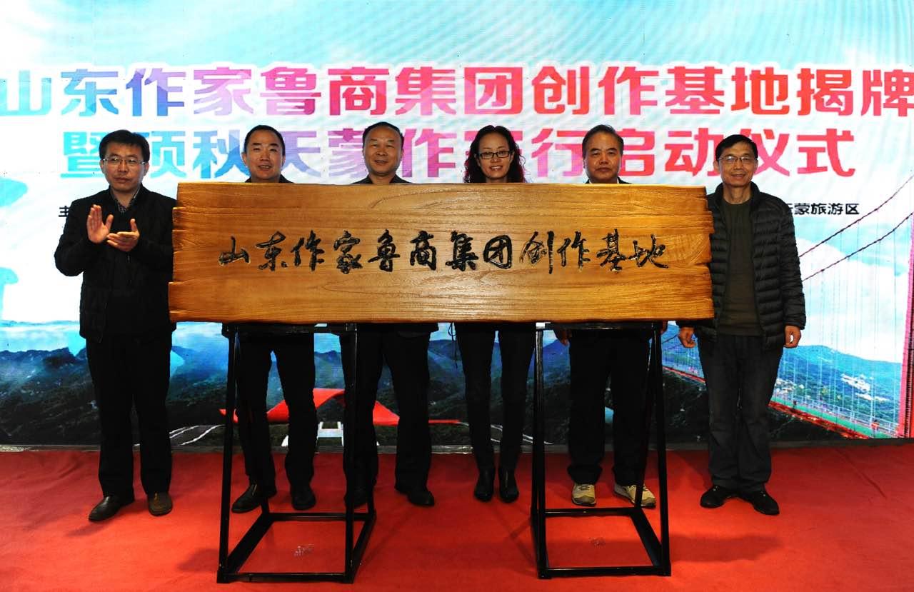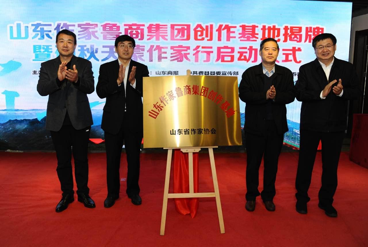 王紅勇、姬德君、高洪雷、邊峰為“山東作家魯商集團(tuán)創(chuàng)作基地”揭牌。作家代表許晨、劉玉棟、鐵流、東紫、夏立君、李登建為“碩秋天蒙作家行”活動(dòng)開筆。