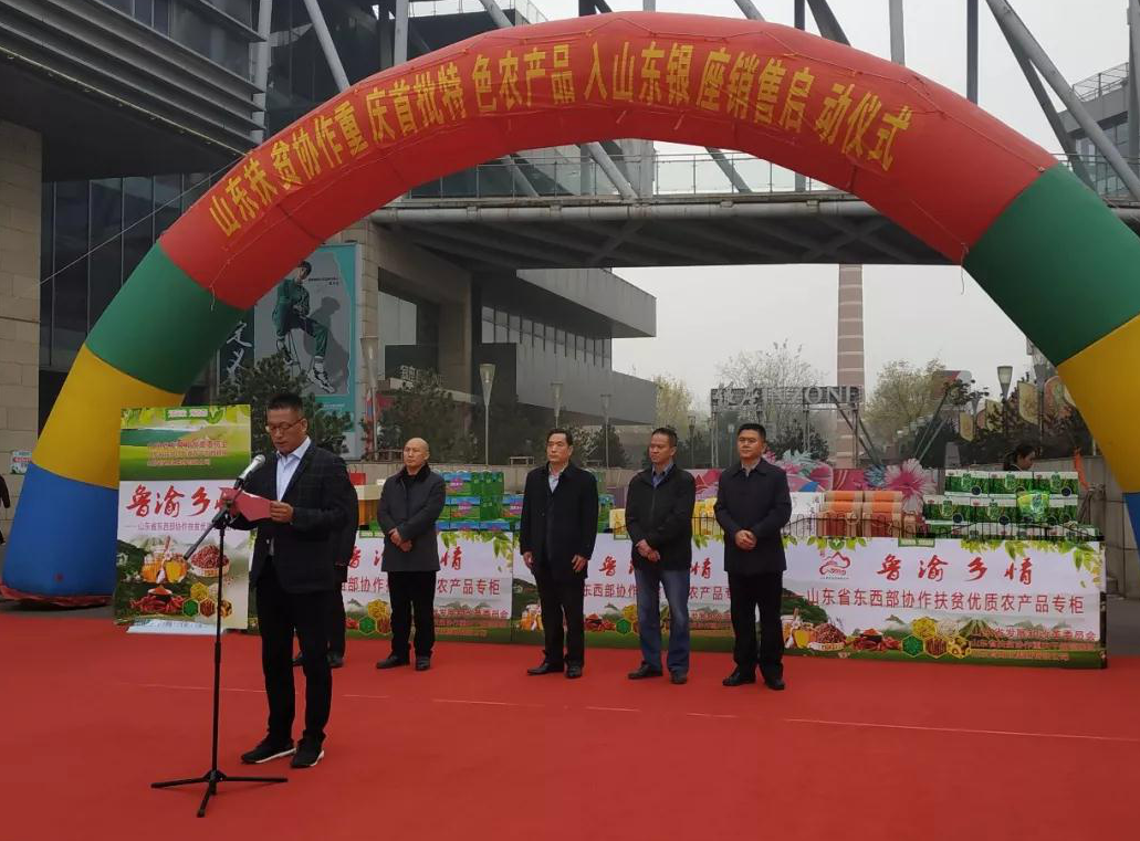 12月1日,山東扶貧協(xié)作重慶首批特色農(nóng)產(chǎn)品進(jìn)駐山東銀座銷售啟動儀式在濟(jì)南玉函店舉行,協(xié)作品牌第一批優(yōu)質(zhì)農(nóng)產(chǎn)品正式亮相濟(jì)南銀座超市。