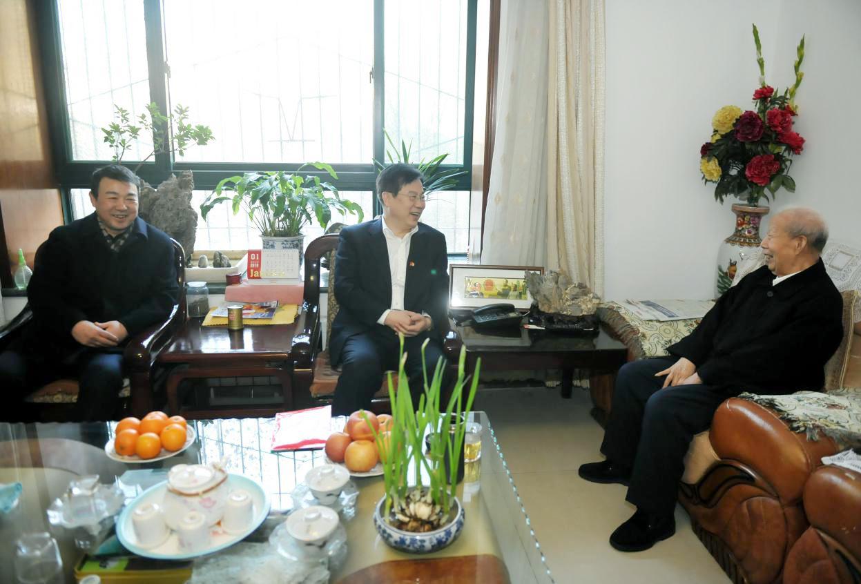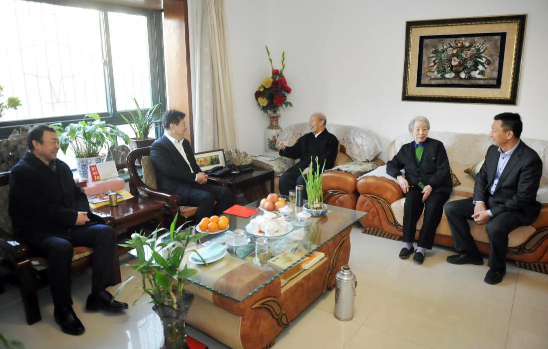來到程俊德老人家中,張斌關切地詢問老兩口的身體和生活情況,感謝他們做出的貢獻,并認真聽取老人的意見和建議。張斌說,根據省委、省政府安排,他代表省國資委走訪看望老同志。老同志是黨和人民事業的寶貴財富,山東國資的工作離不開老同志們的支持。隨后張斌介紹了2018年省屬企業運行發展情況:去年實現營業收入12707億元,實現利潤總額660億元,同比分別增長14%和40%;資產總額達到29303億元,主要經營指標創歷史最好水平。高洪雷也介紹了省商業集團2018年的發展情況:主要經濟指標明顯好轉,實現了宏觀經濟進入新常態以來的最大增幅。兩人均表示,好成績源于老同志們打下的好基礎,也得益于老同志們對工作的支持。