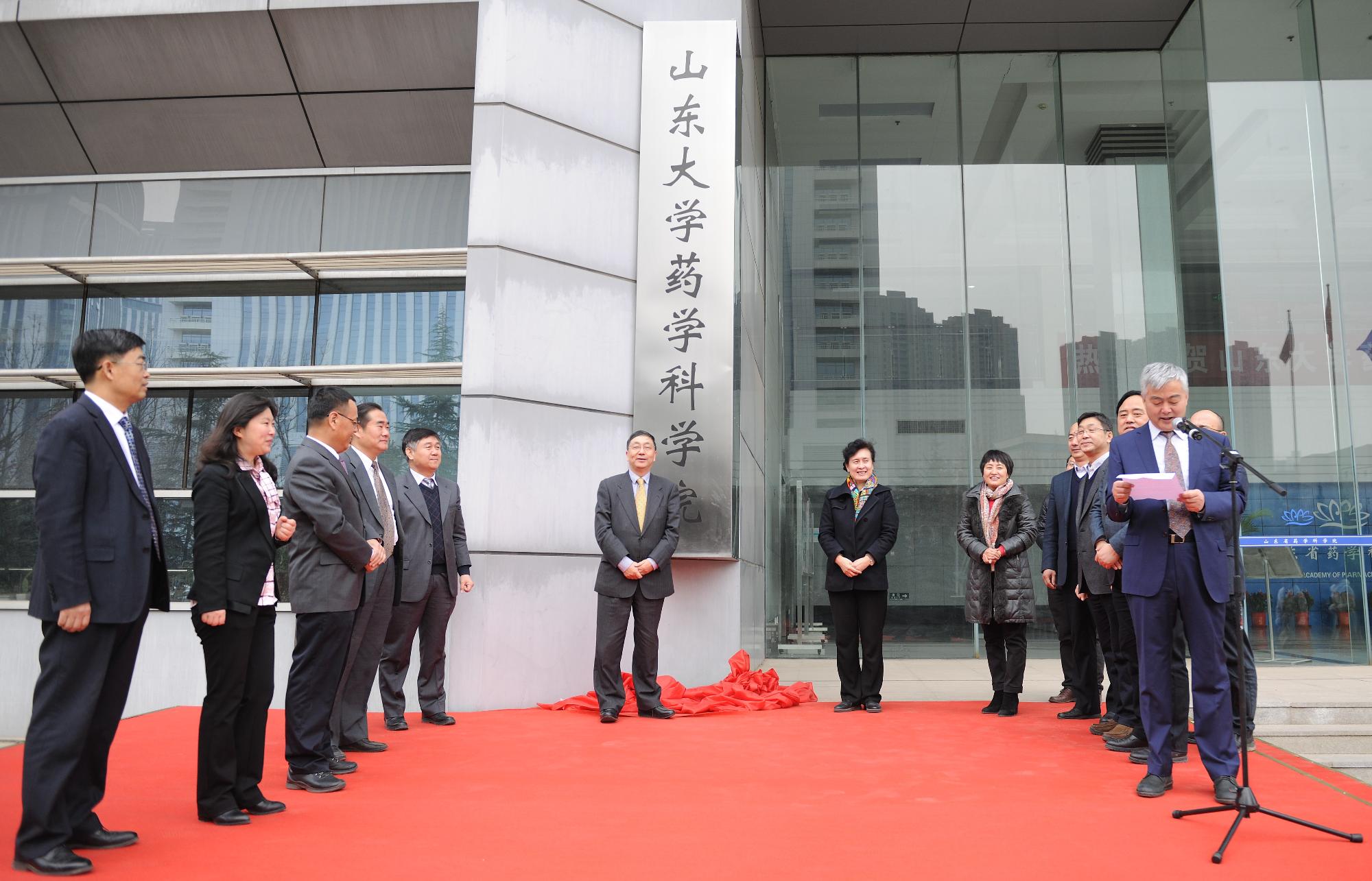儀式現場,劉守亮、陳子江代表雙方進行簽約。隨后,凌沛學與陳子江為山東大學藥學科學院揭牌。