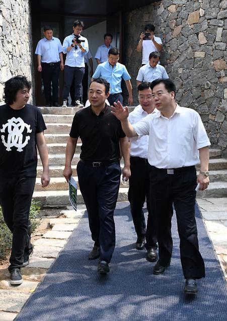 9月5日,省國資委在泰安組織召開穩增長促發展重點項目建設調度會。期間,省國資委黨委書記、主任張斌帶隊現場觀摩由省商業集團有限公司(以下簡稱魯商集團)打造的九女峰鄉村振興項目,并給予充分肯定。魯商集團黨委書記、董事長兼省文旅集團董事長高洪雷,泰安市委副書記、市長張濤,泰安市委常委、常務副市長展寶衛,省國資委二級巡視員王緒超,泰安市政府秘書長張韌出席活動。