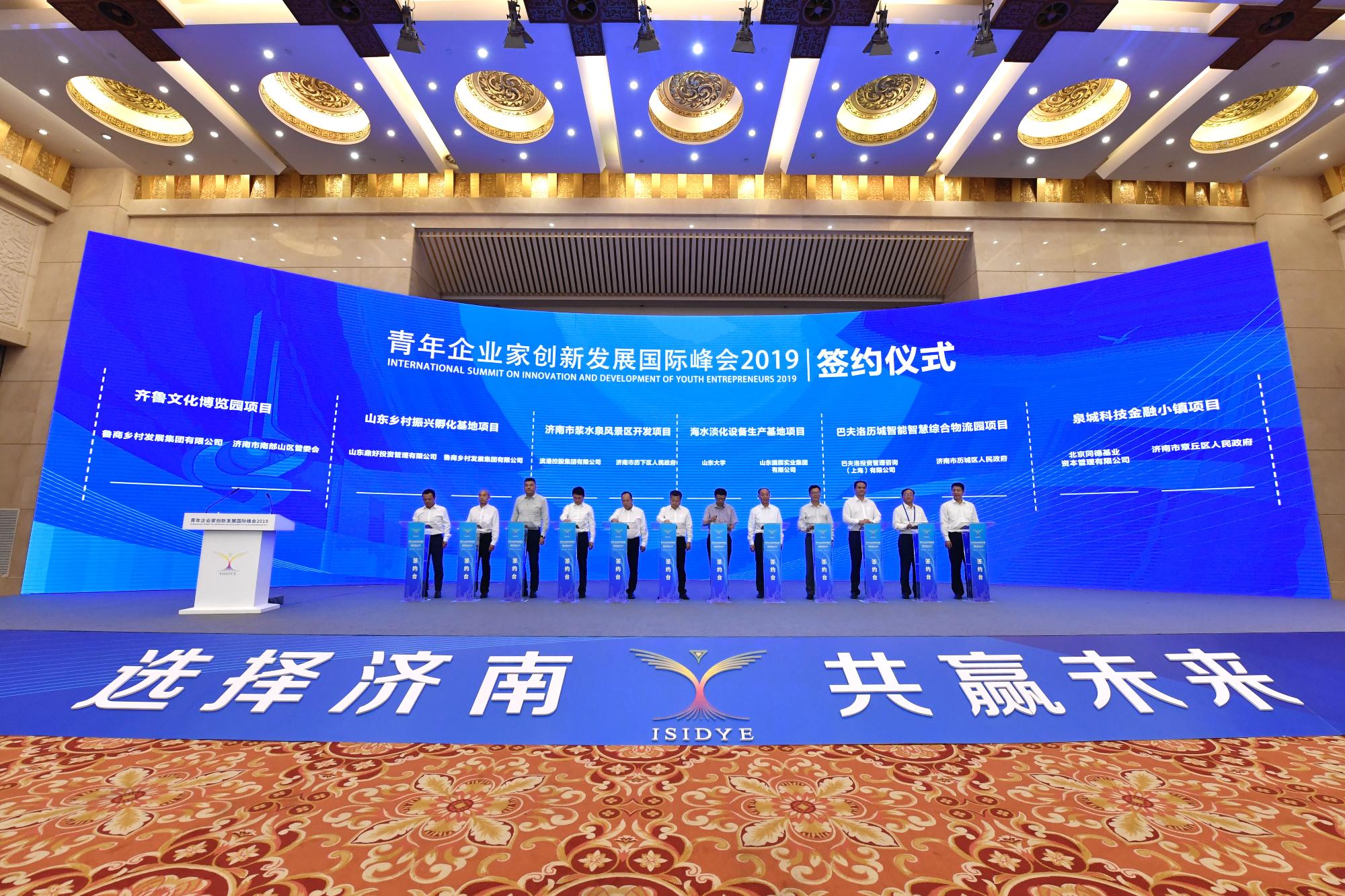 9月9日,青年企業家創新發展國際峰會2019(以下簡稱青企峰會)開幕式在濟南舉行,800余位重量級專家學者、企業家出席。會上重點推介了26個項目,省商業集團有限公司(簡稱魯商集團)三個項目入選,分別為齊魯文化博覽園項目、客天下(泰山佑)國際生態旅游度假區項目和山東鄉村振興孵化基地項目。其中,齊魯文化博覽園項目和山東鄉村振興孵化基地項目現場舉行簽約儀式。