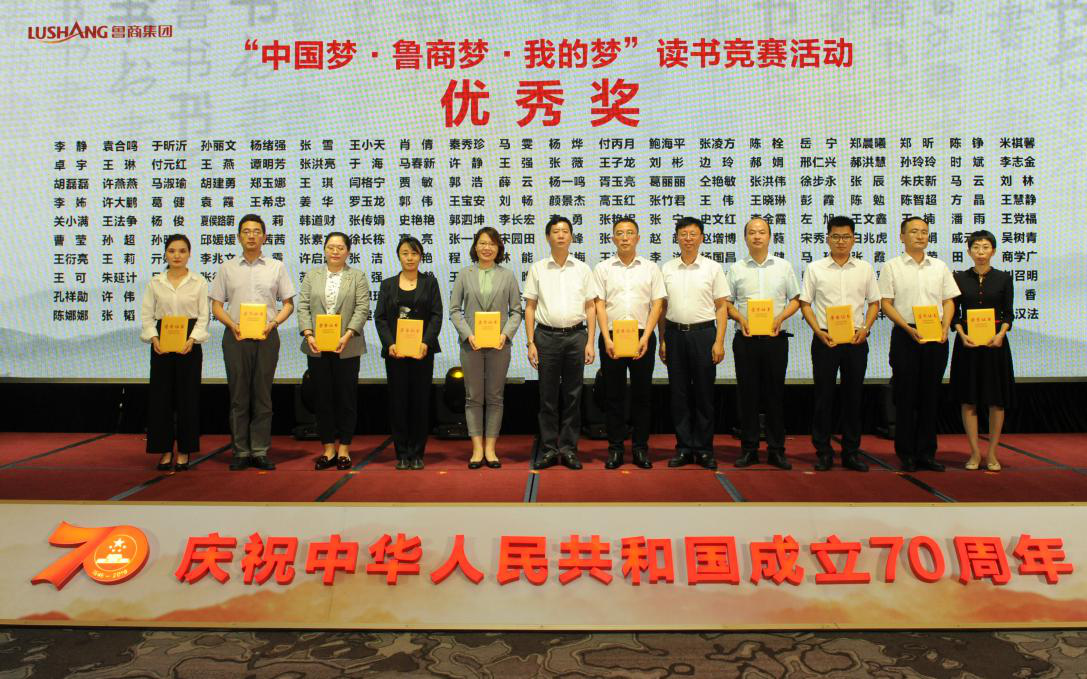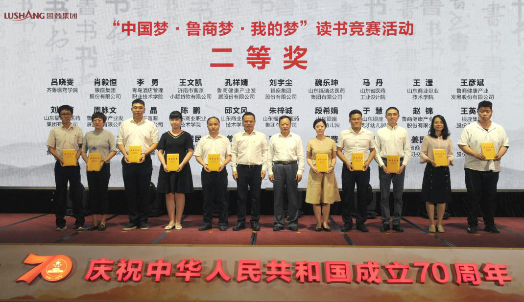 用書香守候初心,品讀中追尋夢想。“中國夢·魯商夢·我的夢”讀書競賽活動共評選出一等獎20名,二等獎30名,三等獎60名,優秀獎200名,優秀組織獎5家單位。頒獎典禮上,高洪雷、凌沛學為銀座集團、魯商發展、福瑞達醫藥集團、銀座旅游集團、山東商院等5家單位頒發優秀組織獎;姬德君,陳文東,周尊考,劉守亮,魯商集團黨委常委、紀委書記黎京庭,黨委常委、工會主席李香軍,黨委常委、組織人力資源部部長李林,副總經理李彥勇為獲獎代表頒獎。