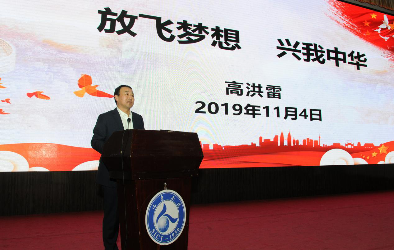 當天的山東商院報告廳內,600余名師生濟濟一堂,認真聆聽這場題為《放飛夢想 興我中華》的報告。高洪雷為廣大青年學子送上深情寄語,希望同學們把愛國作為永遠的情懷,把歷史作為最好的老師,把讀書變成一種信仰,把創業作為第一選擇。
