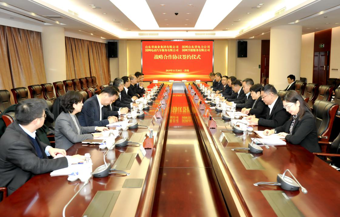 11月20日,省商業集團有限公司(以下簡稱魯商集團)與國網山東省電力公司(以下簡稱國網山東電力)、國網電動汽車服務有限公司(以下簡稱國網電動汽車公司)、國網節能服務有限公司(以下簡稱國網節能公司)戰略合作協議簽約儀式在濟南舉行。
