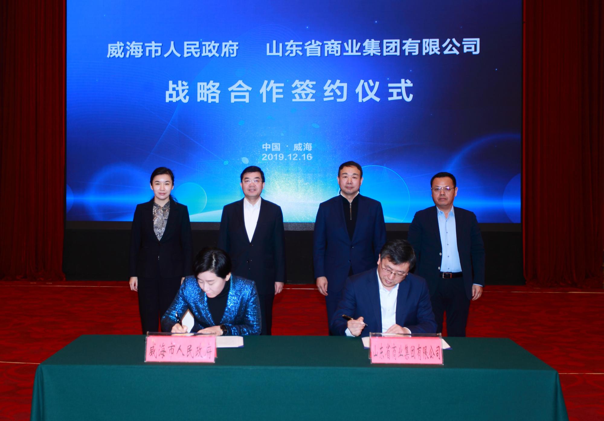 在高洪雷、張海波、劉守亮、張宏偉共同見證下,魯商集團副總經理姜國棟與威海市副市長楊麗分別代表雙方簽署戰略合作協議。