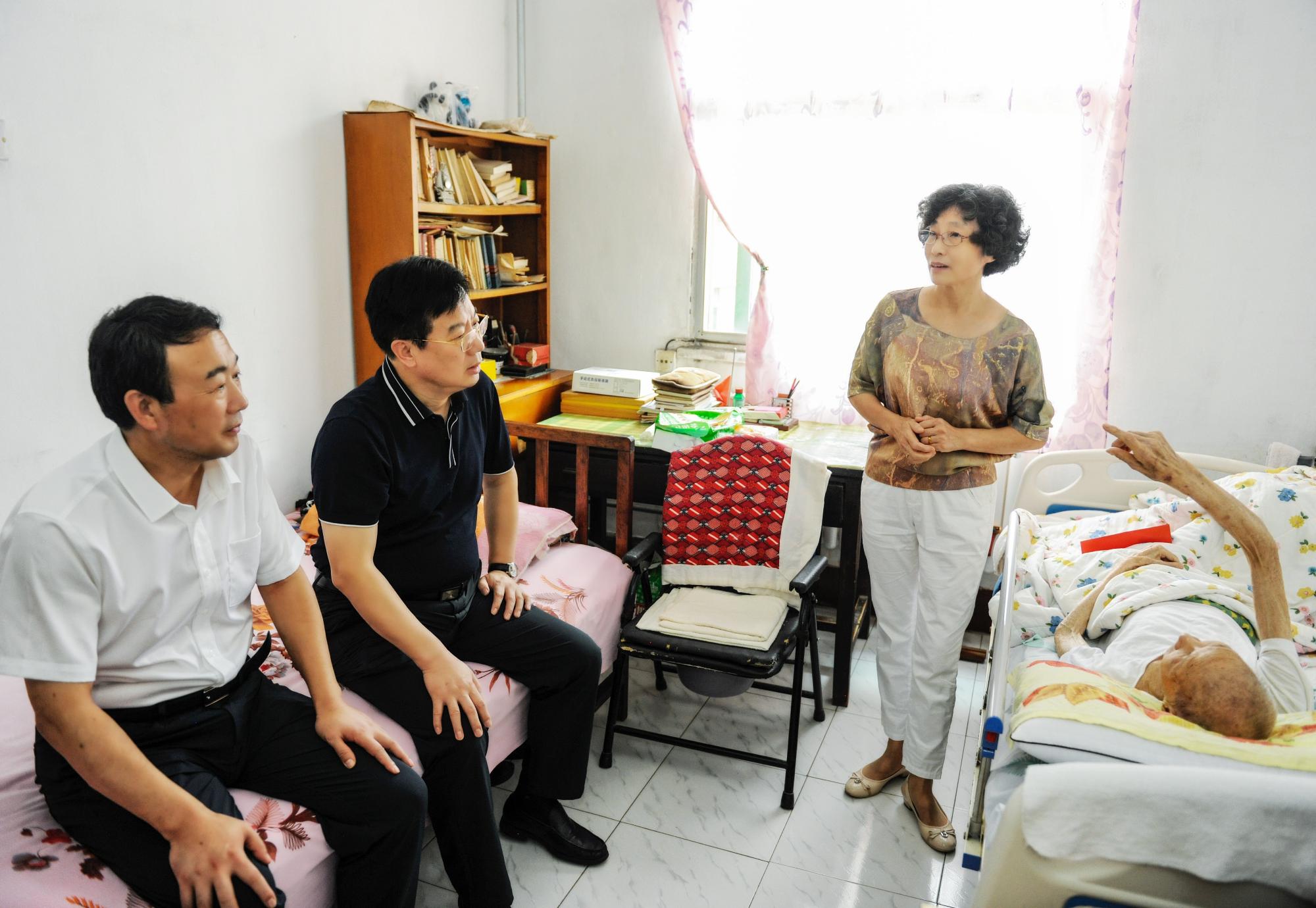 呂泌老人今年已有91歲高齡,患病癱瘓在床,生活無法自理。在呂泌家中,張斌向其大女兒呂元美關(guān)切地詢問老人的身體狀況及護理情況。他說,家屬照顧老人很辛苦,有什么困難,一定要跟組織上說。同時,張斌還向老人家屬介紹了省國資國企和魯商集團的發(fā)展情況。他說,因為疫情,魯商集團今年承擔(dān)了很大的壓力,一方面要穩(wěn)市場保障物資供應(yīng),另一方面還要為諸多商鋪租戶減免房租。盡管如此,今年上半年魯商集團仍舊保持了良好的發(fā)展態(tài)勢。