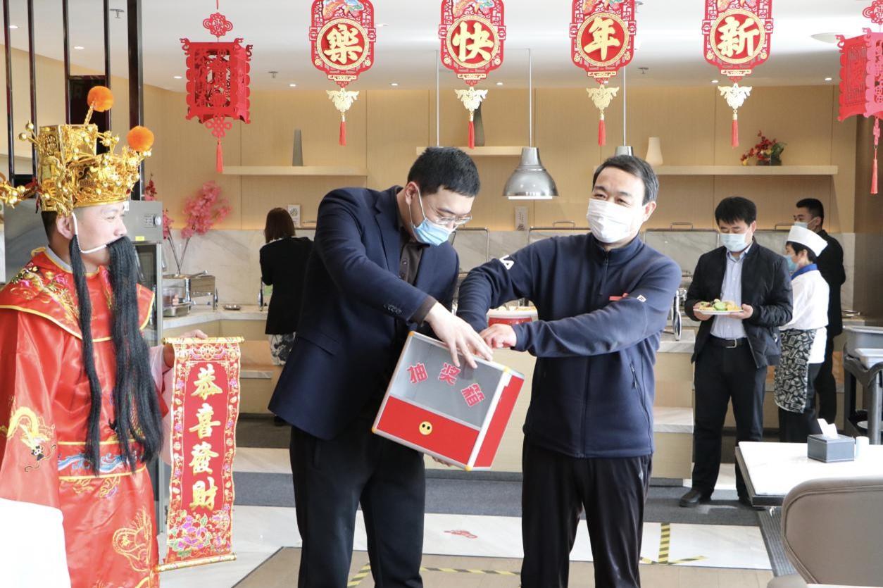 午餐時(shí)間,集團(tuán)黨委書(shū)記、董事長(zhǎng)兼國(guó)欣文旅董事長(zhǎng)高洪雷,集團(tuán)黨委常委、總審計(jì)師、工會(huì)主席劉德華在現(xiàn)場(chǎng)分別為大家抽取并頒發(fā)幸運(yùn)小獎(jiǎng)品,將本次活動(dòng)推向了高潮。大家紛紛留下自己的新春祝詞,共同品嘗集體的“勞動(dòng)成果”,鮮香的味道在舌尖綻放,美味的水餃讓人感受到團(tuán)團(tuán)圓圓的大家庭氣氛。