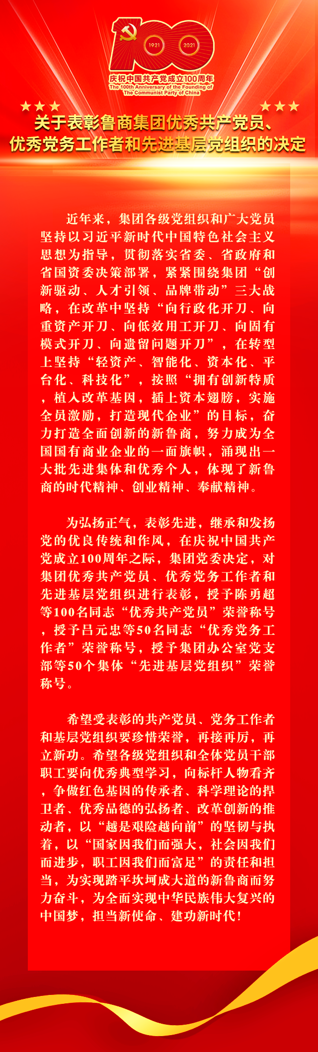 <font color=red>關(guān)于表彰集團(tuán)優(yōu)秀共產(chǎn)黨員、優(yōu)秀黨務(wù)工作者和先進(jìn)基層黨組織的決定</font>