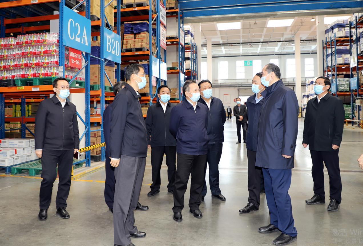 4月3日,省委書記李干杰來到魯商集團(tuán)銀座配送中心調(diào)研疫情防控與市場(chǎng)保供工作,省委常委、濟(jì)南市委書記劉強(qiáng),濟(jì)南市委副書記、代市長(zhǎng)于海田,魯商集團(tuán)黨委書記、董事長(zhǎng)兼山東文旅集團(tuán)董事長(zhǎng)高洪雷,魯商集團(tuán)首席電子商務(wù)官、銀座集團(tuán)黨委書記、董事長(zhǎng)布廷現(xiàn)陪同。