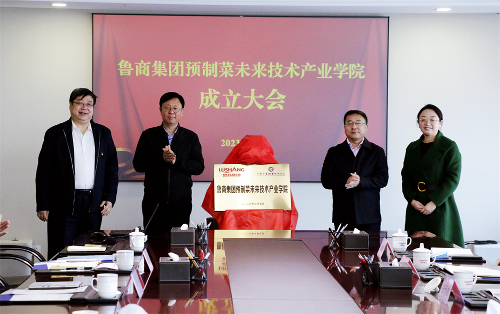 隨后,朱華建、李林、張志東、王鑫共同為魯商集團(tuán)預(yù)制菜未來技術(shù)產(chǎn)業(yè)學(xué)院揭牌。與會人員就產(chǎn)業(yè)學(xué)院建設(shè)方案進(jìn)行研討。
