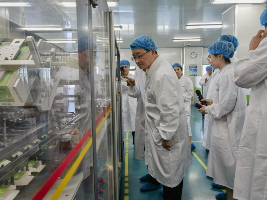 在明仁福瑞達口服固體制劑生產車間,于海田詳細詢問企業生產經營情況及當前存在的困難,對園區配套問題進行現場調度部署,要求加強政企溝通協作,盡快制定切實可行的方案并落實到位。