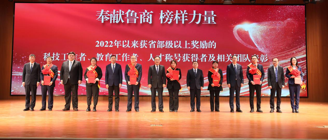 會議隆重表彰了2022年以來獲省部級以上獎勵的科技工作者、教育工作者、人才稱號獲得者及相關團隊,分別為其頒發“奉獻魯商 榜樣力量”先進個人、優秀團隊榮譽證書。