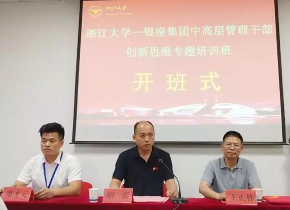 6月25日,銀座集團中高層管理干部創新思維專題培訓班在浙江大學華家池校區開班。銀座集團股份有限公司黨委副書記、總經理胡鑫,浙江大學繼續教育學院副院長王正棟出席并講話。