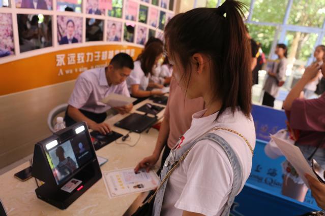 “滴,驗證通過。”學(xué)院今年迎新采用數(shù)字智能化迎新模式,啟用人臉識別系統(tǒng),新同學(xué)只需幾秒鐘就可以完成報到。每個學(xué)院迎新處都配備了一臺機器,供新生“刷臉”注冊,新生只要站在人臉采集設(shè)備前稍稍駐足,系統(tǒng)便可以根據(jù)現(xiàn)場采集的圖像與數(shù)據(jù)庫中的新生照片進行識別,并通過生物識別算法迅速抓取學(xué)生臉部圖像,精準識別出新生的身份。