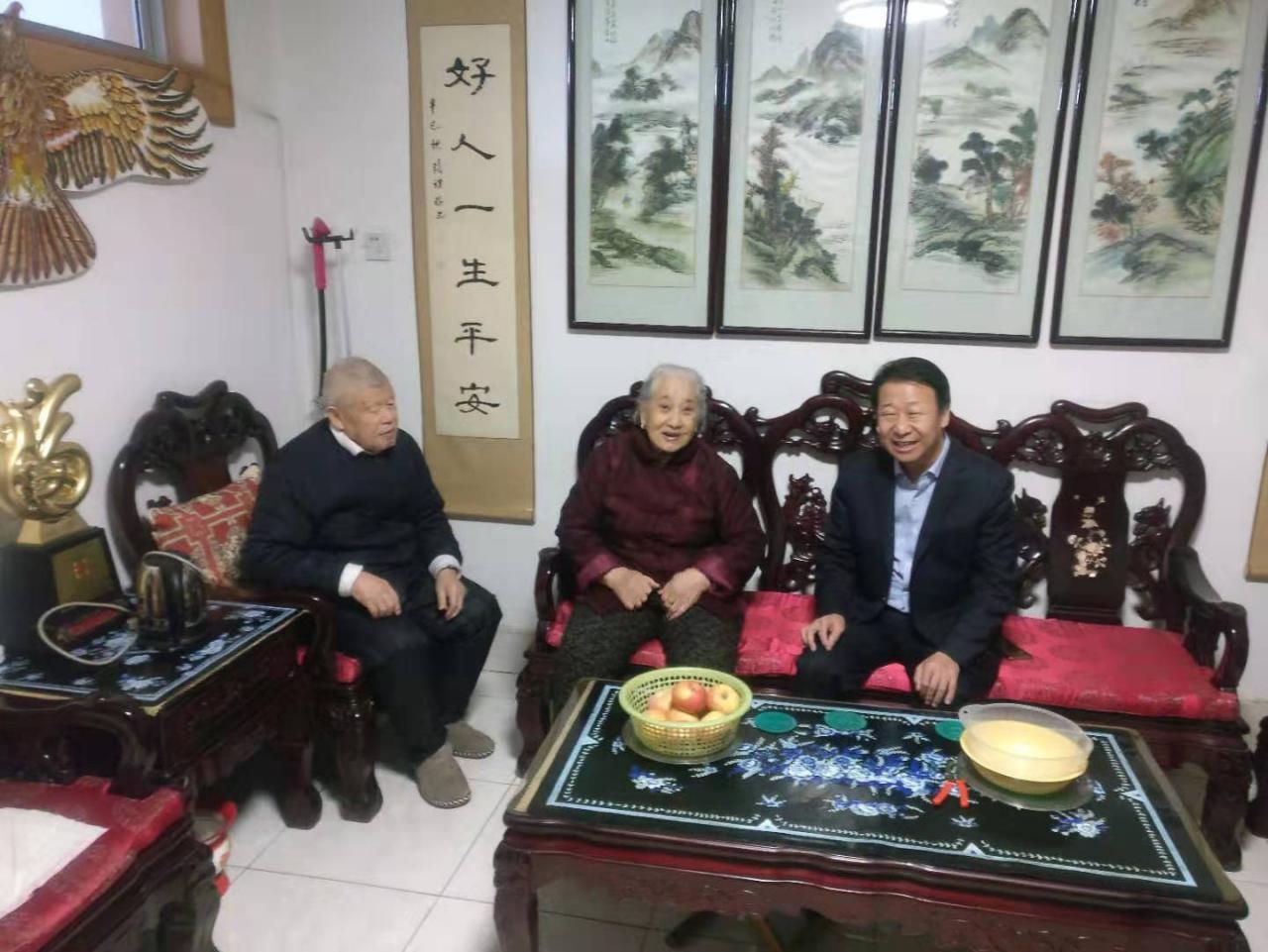 銀座集團(tuán)黨委書記、董事長侯功海看望了新中國成立70周年勛章獲得者和老黨員。每到一處,侯功海都與老同志促膝交談,詳細(xì)詢問他們的身體狀況和退休后的生活,并送上新春祝福。同時(shí),侯功海介紹了公司的發(fā)展成績,歡迎他們常回公司看看,并祝福老人健康長壽、闔家幸福。