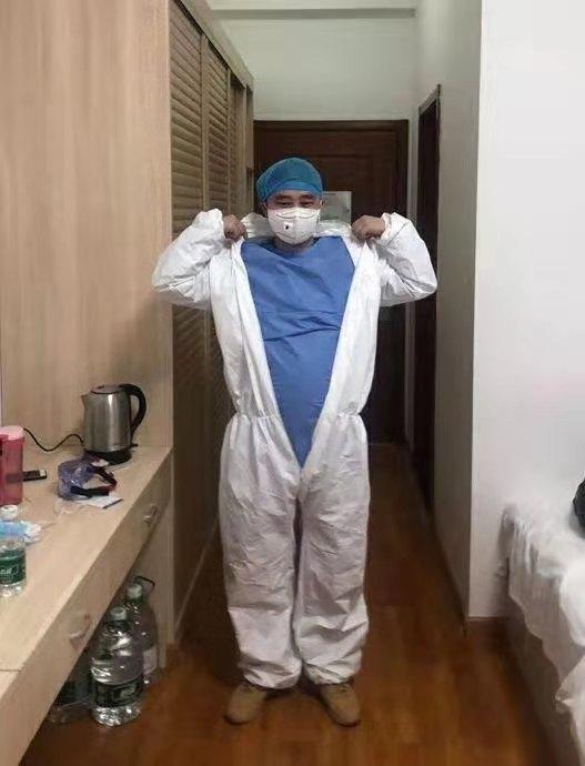 于波是齊魯醫(yī)藥學(xué)院1999級醫(yī)學(xué)影像專業(yè)學(xué)生,目前就職于滕州市人民醫(yī)院。大年初一,剛下夜班的于波來不及休息就動身前往湖北,當(dāng)天晚上抵達(dá)武漢天河機場,初二凌晨3點入住黃岡酒店。從到湖北的第一天起,于波就沒有好好休息過。各種防護(hù)培訓(xùn)、安全考核接踵而來,各種物資的搬運整理、各類機器的調(diào)試都需要人手。時間不等人,患者病情更不容許有一刻的耽誤。于波咬緊牙關(guān),抓緊一切時間沖鋒在前。
