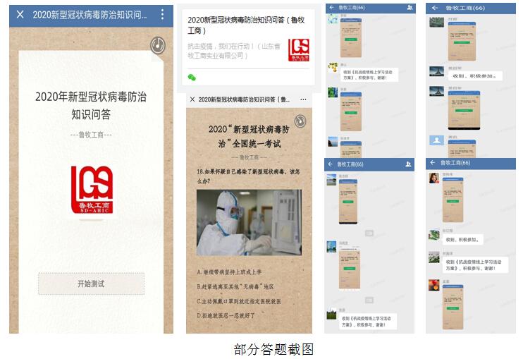 為認真貫徹落實上級關于新型冠狀病毒感染肺炎疫情防控工作部署,進一步加強疫情防控工作,掌握疫情防控科學知識,保障員工身體健康和生命安全,按照省商業集團有限公司和投資公司要求,結合公司實際情況,近日,山東省牧工商實業有限公司(以下簡稱牧工商)組織全體員工開展“戰疫情線上學習答題”活動。
