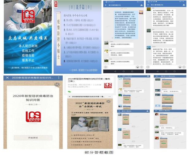 疫情就是命令、防控就是責任!疫情發(fā)生以后,牧工商綜合部全體人員迅速進入應急狀態(tài),24小時隨時待命,壓實責任,全力做好防范新型冠狀病毒感染的肺炎疫情應急和科普宣傳工作。及時制作企業(yè)疫情防控期間線上工作宣傳圖片、抗疫小貼士,強化正面輿情宣傳,主動發(fā)起“抗疫情線上學習答題”活動,范圍延伸至投資公司近百余人。同時,開展“只爭朝夕、不負韶華”線上主題黨日,以實際行動展現(xiàn)牧工商人防控疫情我?guī)ь^、政治學習不掉隊、黨員先鋒在行動的思想覺悟。