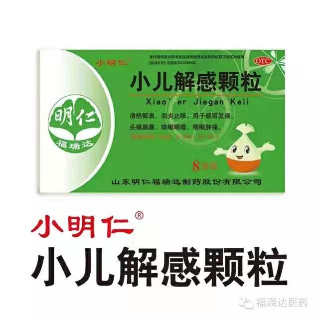 小兒解感顆粒是由福瑞達醫藥集團旗下的明仁福瑞達自主研發的中成藥,具有清熱解表、消炎止咳、抗病毒之功效,用于感冒發燒、頭痛鼻塞、咳嗽噴嚏、咽喉腫痛。經山東中醫藥大學臨床驗證,該藥物對病毒引起的疾病有明顯治療效果。