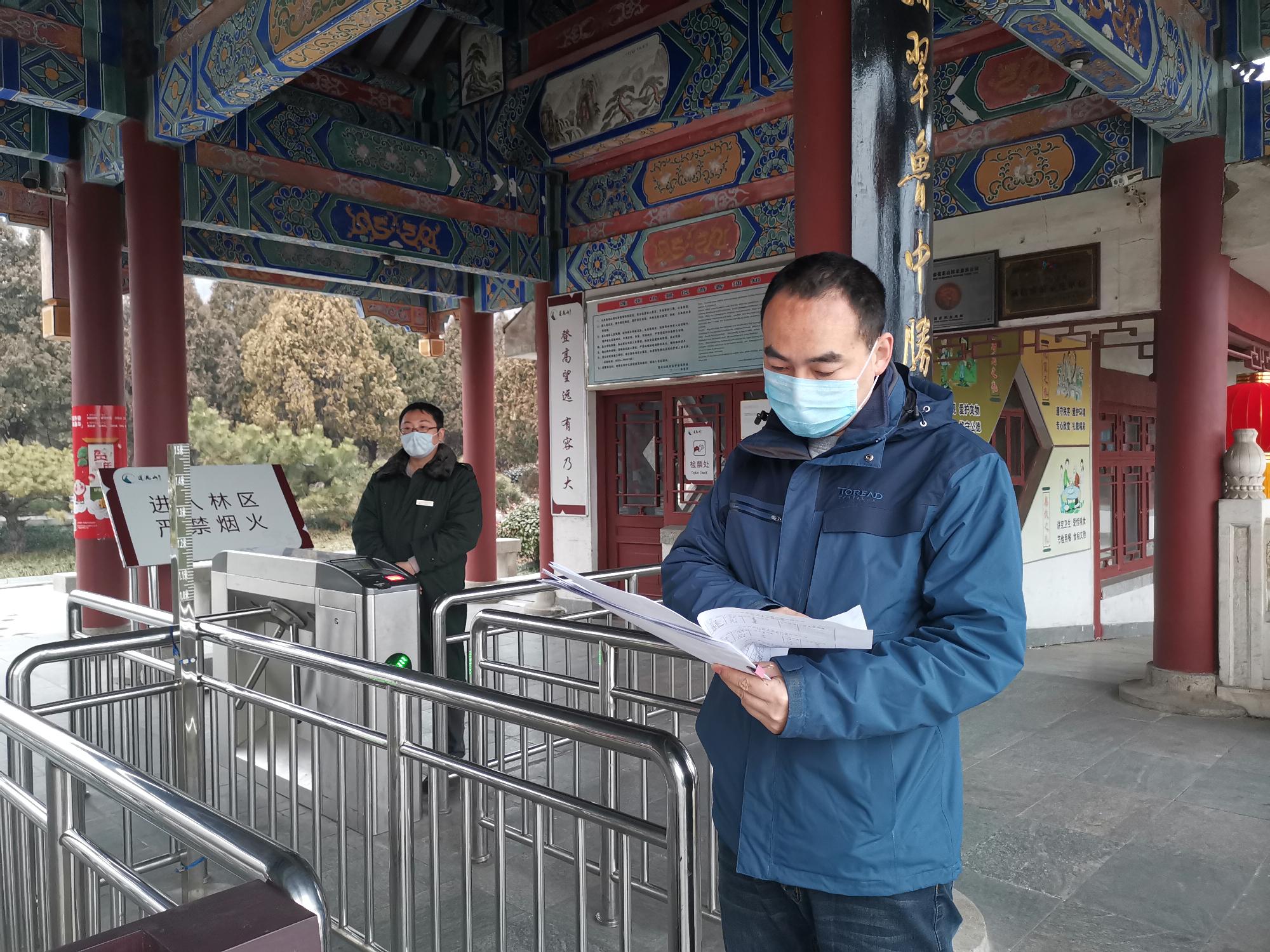 陳斌首先把黨員召集起來,成立了專門防疫小組,建立了疫情責任報告人制度。春節后他帶頭和值班員工保障景區的游客遣返及景區日常管理和維護。為了避免游客和員工聚集,陳斌通過網絡召開緊急視頻會議,每天調度景區的防護情況。“值班的員工上班前必須測量體溫,佩戴口罩,有情況及時匯報,這是對別人負責,更是對自己的安全負責”,陳斌一遍遍叮囑著大家,“尤其是做好臨近村落的村民防控,好多村民不愿呆在家里,喜歡到山上來溜達,一定要做好排查”。