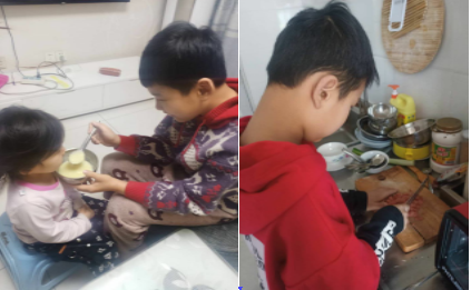 這個(gè)11歲的“男子漢”主動(dòng)承擔(dān)起了做飯、照顧妹妹的重?fù)?dān)。菜刀對(duì)他來(lái)說(shuō)還有些重,一不小心會(huì)切到手;炒菜掌握不好,熱油濺到臉上;煎雞蛋沒(méi)控好火侯,把蛋煎生了;妹妹會(huì)哭,還不易哄……但是,這個(gè)勇敢的男孩一點(diǎn)點(diǎn)承擔(dān)起來(lái)。