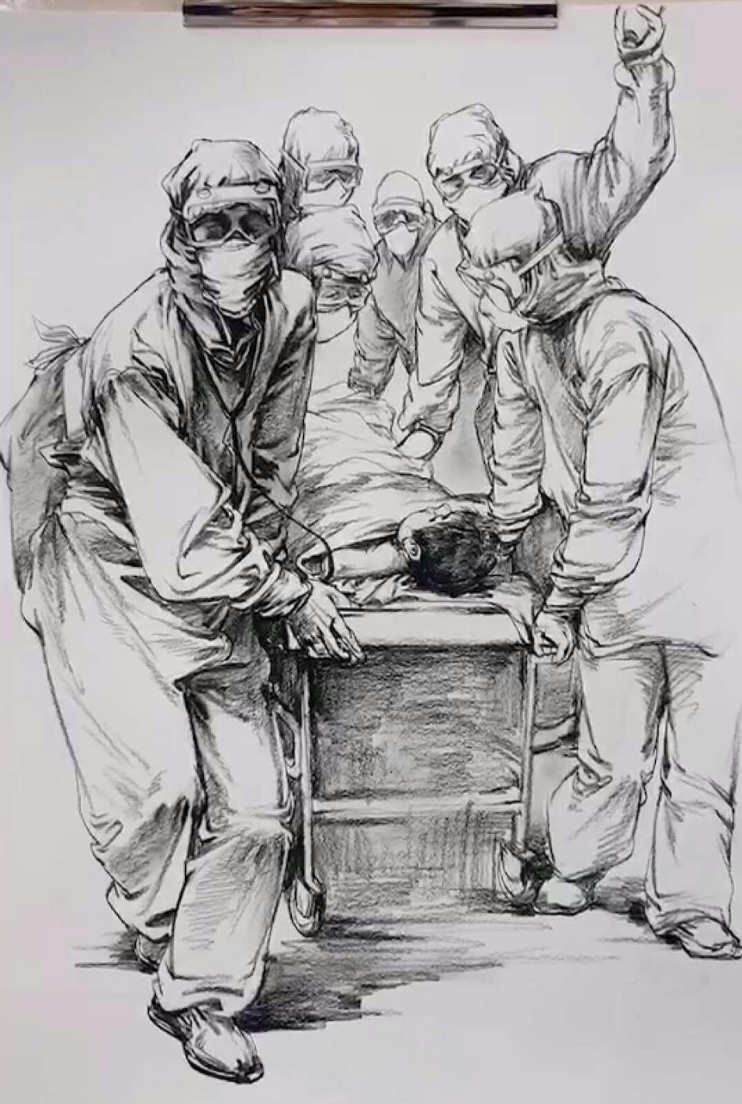 “綻天使光芒,擔白衣使命”活動一等獎繪畫類作品,作者:張婷(2017級護理學本科3班)