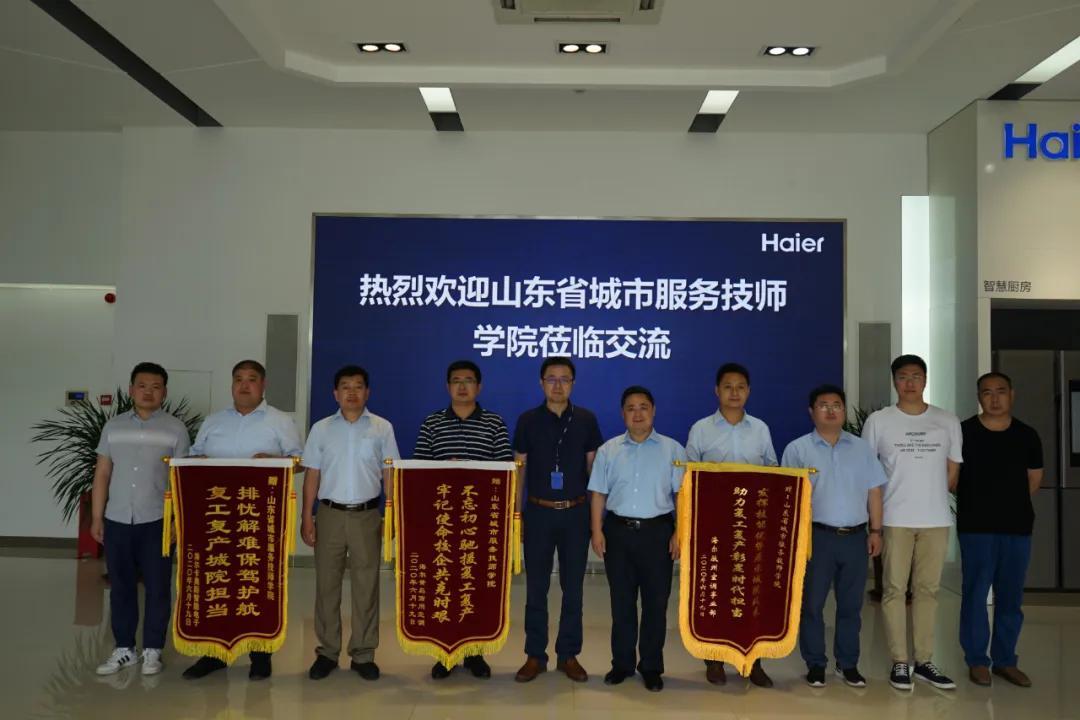 下午,調(diào)研組一行來到到海爾集團(tuán)嶗山廠區(qū),在總經(jīng)理高廣偉陪同下參觀了生產(chǎn)車間并慰問了部分跟崗實(shí)習(xí)學(xué)生。刁洪斌一行與海爾卡奧斯的領(lǐng)導(dǎo)進(jìn)行了交流座談。高廣偉代表企業(yè)向調(diào)研組介紹了學(xué)院實(shí)習(xí)學(xué)生的工作、生活情況,對(duì)學(xué)院師生所展現(xiàn)的優(yōu)良思想品質(zhì)與務(wù)實(shí)工作作風(fēng)給予高度贊揚(yáng)。尤其是在疫情防控特殊時(shí)期,省城市學(xué)院積極馳援,助力復(fù)工復(fù)產(chǎn),更彰顯了學(xué)院師生履行社會(huì)責(zé)任、服務(wù)經(jīng)濟(jì)社會(huì)的拳拳之心,他代表海爾集團(tuán)對(duì)省城市學(xué)院深表感謝和敬意。校企雙方圍繞招工招生一體化、共建實(shí)習(xí)實(shí)訓(xùn)中心、人才培養(yǎng)模式創(chuàng)新、企業(yè)教師工作站建設(shè)、學(xué)院為海爾員工培訓(xùn)等內(nèi)容進(jìn)行了深入的交流和探討,雙方就海爾集團(tuán)在學(xué)院投資建設(shè)生產(chǎn)型實(shí)訓(xùn)中心和職業(yè)訓(xùn)練基地達(dá)成合作意向。座談結(jié)束后,刁洪斌代表學(xué)院接收了企業(yè)贈(zèng)送的感謝錦旗。