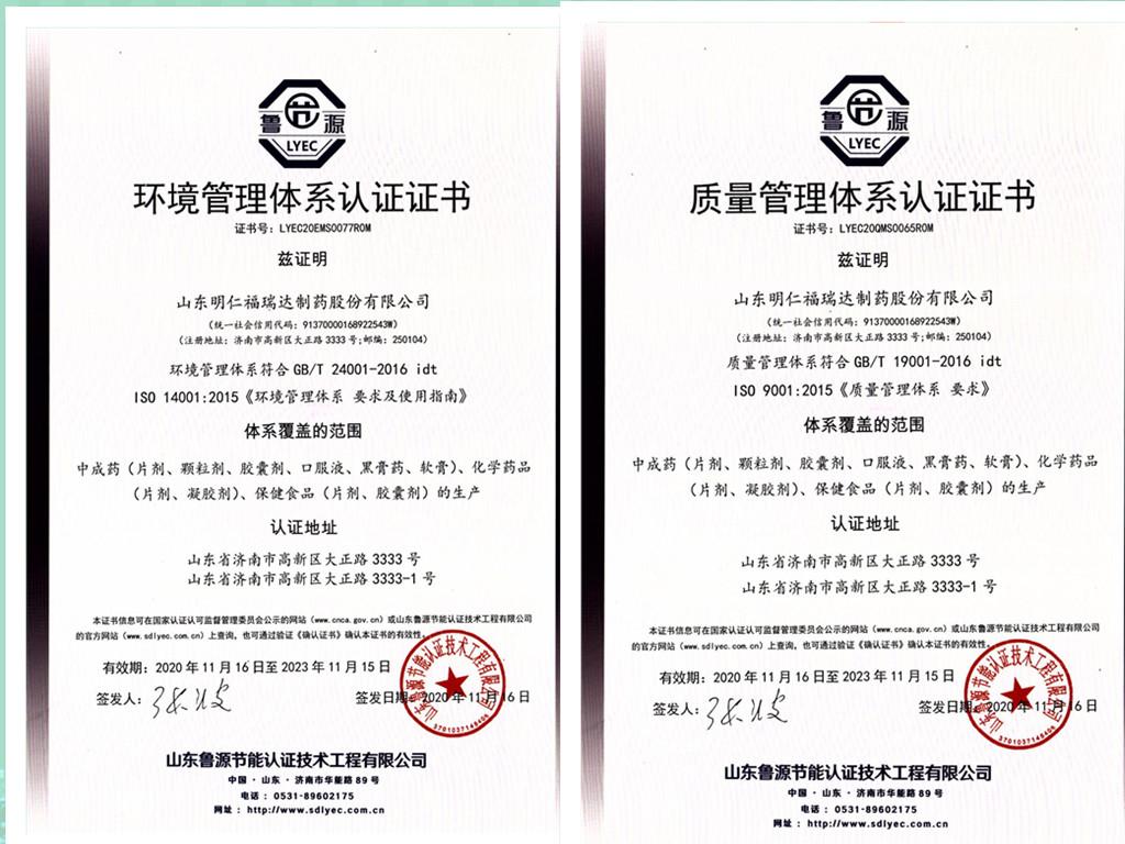 明仁福瑞達自推行四項管理體系以來,不斷完善制度建設(shè),嚴(yán)控產(chǎn)品質(zhì)量、注重環(huán)境保護、優(yōu)化能源結(jié)構(gòu)、關(guān)注員工健康、緊抓安全生產(chǎn),爭做為員工提供安全工作環(huán)境、為人民提供優(yōu)質(zhì)健康產(chǎn)品的環(huán)境友好型企業(yè)。四項管理體系認證證書的取得,是對公司質(zhì)量管理、環(huán)境管理、能源管理、職業(yè)健康安全管理等各項工作規(guī)范化、標(biāo)準(zhǔn)化的肯定。