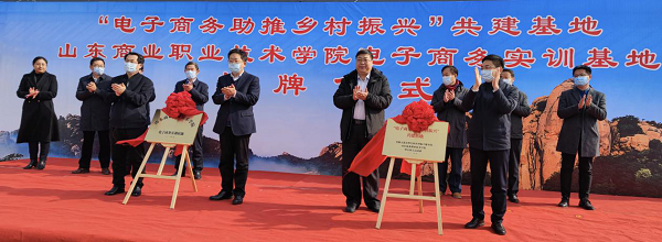 揭牌儀式上,張志東、李學(xué)春為“電子商務(wù)助推鄉(xiāng)村振興”共建基地揭牌,馬維強(qiáng)、林杰為“山東商院電子商務(wù)實(shí)訓(xùn)基地”揭牌。