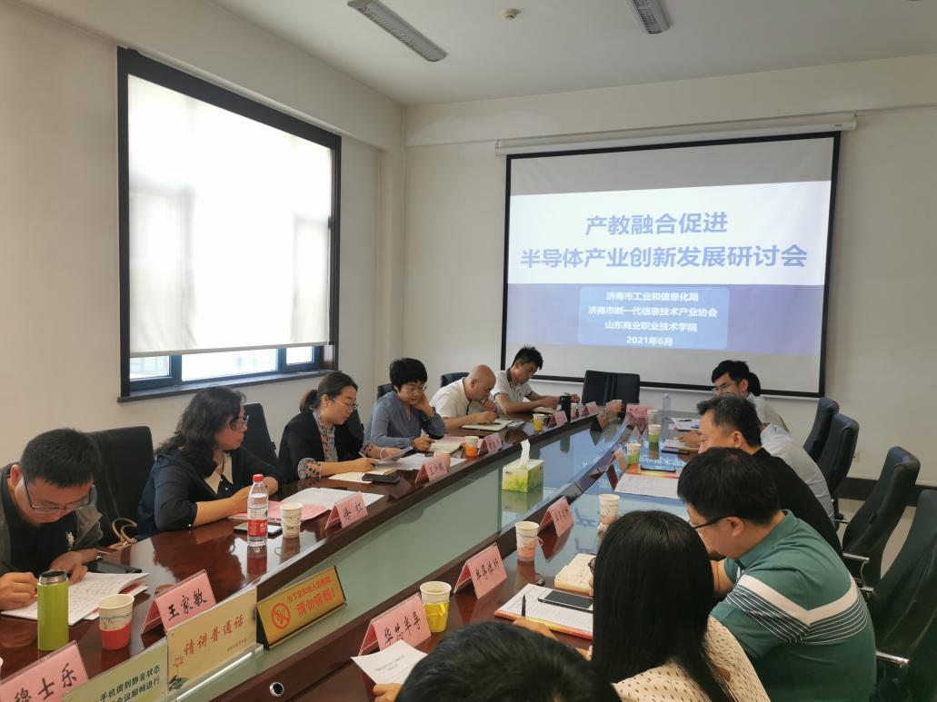 6月4日,山東商院與濟南市工業和信息化局、濟南市新一代信息技術產業協會共同舉辦的產教融合促進半導體產業創新發展研討會召開。濟南市工業和信息化局副局長王沖、濟南市新一代信息技術產業協會秘書長丁玉樹、山東商業職業技術學院副院長徐紅出席會議,濟南市工業和信息化局信息產業處處長曹志芹主持。