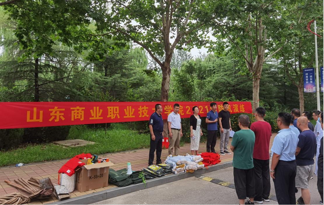 7月21日,山東商院開展防汛強(qiáng)險(xiǎn)應(yīng)急演練活動(dòng),提高防汛搶險(xiǎn)的反應(yīng)和應(yīng)急處置能力。院長(zhǎng)王鑫赴現(xiàn)場(chǎng)指導(dǎo)。