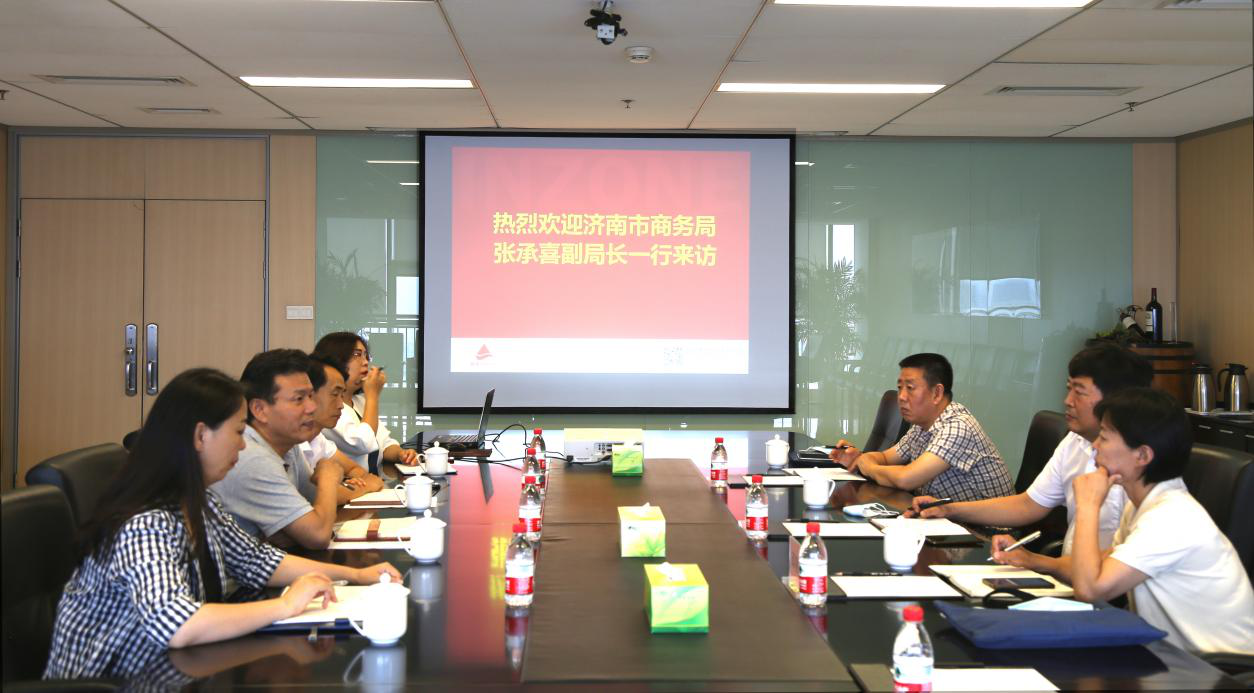 8月11日,濟南市商務局副局長張承喜一行到銀座集團調研,公司黨委副書記李中山接待并參與座談。