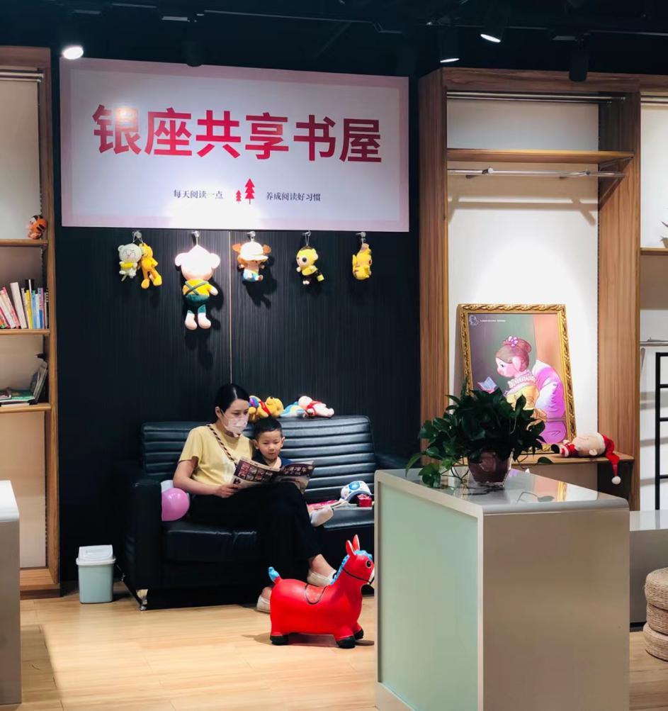 “共享書屋”坐落在銀座商城F2層,書屋內千余本書籍全部由員工自愿捐贈,現場布展了綠植、沙發(fā)、坐墊,營造溫馨的休憩學習氛圍。喧囂的都市,繁忙的一天,“共享書屋”靜謐溫馨,帶給消費者更多的舒適體驗。