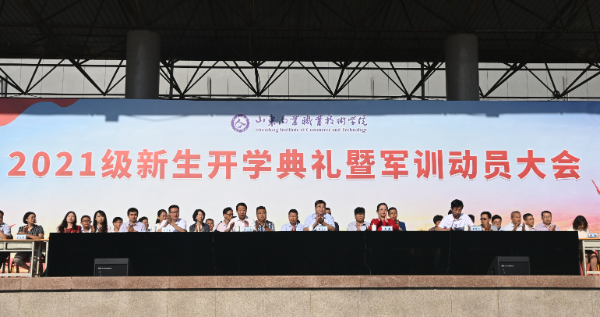 9月15日,山東商院2021級新生開學典禮暨軍訓動員大會舉行。