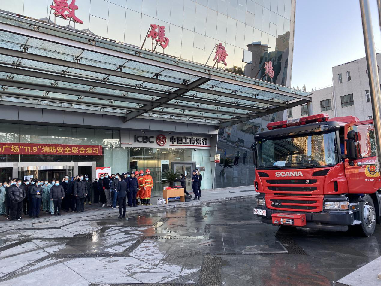 在濟南魯商銀座數(shù)碼廣場項目服務中心,演習模擬電線短路引發(fā)火情導致煙感報警,中控室接到火警后立即通知巡邏人員趕往現(xiàn)場查看并展開撲救。由于火勢升級,服務中心啟動火災應急處置預案,全樓播放消防疏散廣播,疏散組成員立即到位,引導樓內人員迅速有序疏散到樓外安全區(qū)域,滅火行動組穿好戰(zhàn)斗服及自救呼吸器,攜帶滅火工具到達著火樓層,在轉移傷員同時進行滅火處置。整個演習過程緊張有序,達到了預期效果,體現(xiàn)了魯商服務對消防安全工作的一貫重視。