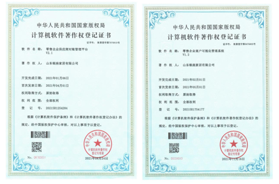 近日,銀座家居供應商返款對賬平臺、商戶可視化管理系統(tǒng)2項數(shù)字化轉型成果先后取得國家版權局計算機軟件著作權登記證書。