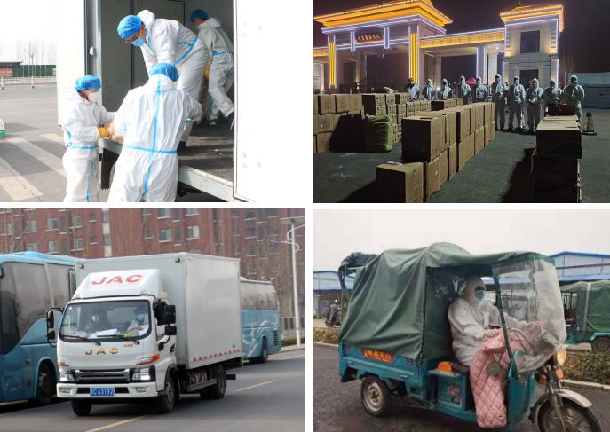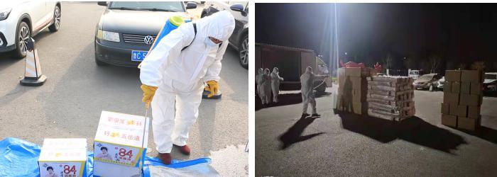 學(xué)院專人對(duì)供應(yīng)物資外包裝進(jìn)行集中消殺,后勤人員和教職工志愿者規(guī)范穿戴防護(hù)服迅速到達(dá)現(xiàn)場(chǎng),有序裝車,運(yùn)進(jìn)校園。由于校內(nèi)沒(méi)有大型運(yùn)輸工具,只能用小型貨車、三輪車、小拖車,組成臨時(shí)“運(yùn)輸小分隊(duì)”,各類車輛往返校門口與食堂400多次,運(yùn)輸小分隊(duì)每人每天平均工作13.5小時(shí),用雙腳打通食材供應(yīng)的“最后一公里”。