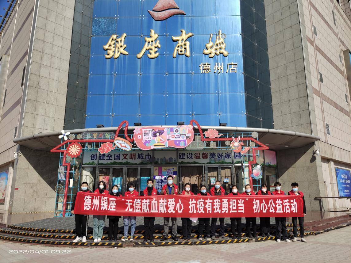 4月1日,德州銀座組織干部職工開展“無償獻血獻愛心 抗疫有我勇擔當”初心公益活動,緩解疫情防控時期臨床醫療血液供應緊張。