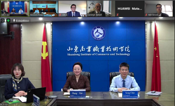 4月22日,山東商院與英國知山大學(xué)以線上方式簽署合作備忘錄。知山大學(xué)副校長(zhǎng)喬治?泰爾伯特,山東商院黨委副書記、院長(zhǎng)王鑫,黨委副書記宋超,國際交流部部長(zhǎng)朱穎,英國國家創(chuàng)新創(chuàng)業(yè)教育中心中國辦事處相關(guān)負(fù)責(zé)人參加儀式。