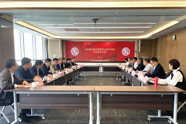 5月17日,青島酒店學院黨委書記李達帶隊前往青島國信發展(集團)有限責任公司(以下簡稱國信集團)進行走訪座談交流,調研社會人才需求,推動校企合作就業,為畢業生開拓更多就業渠道和就業崗位。國信集團董事長王建輝,學校副院長、工會主席姜玲玲參加活動。