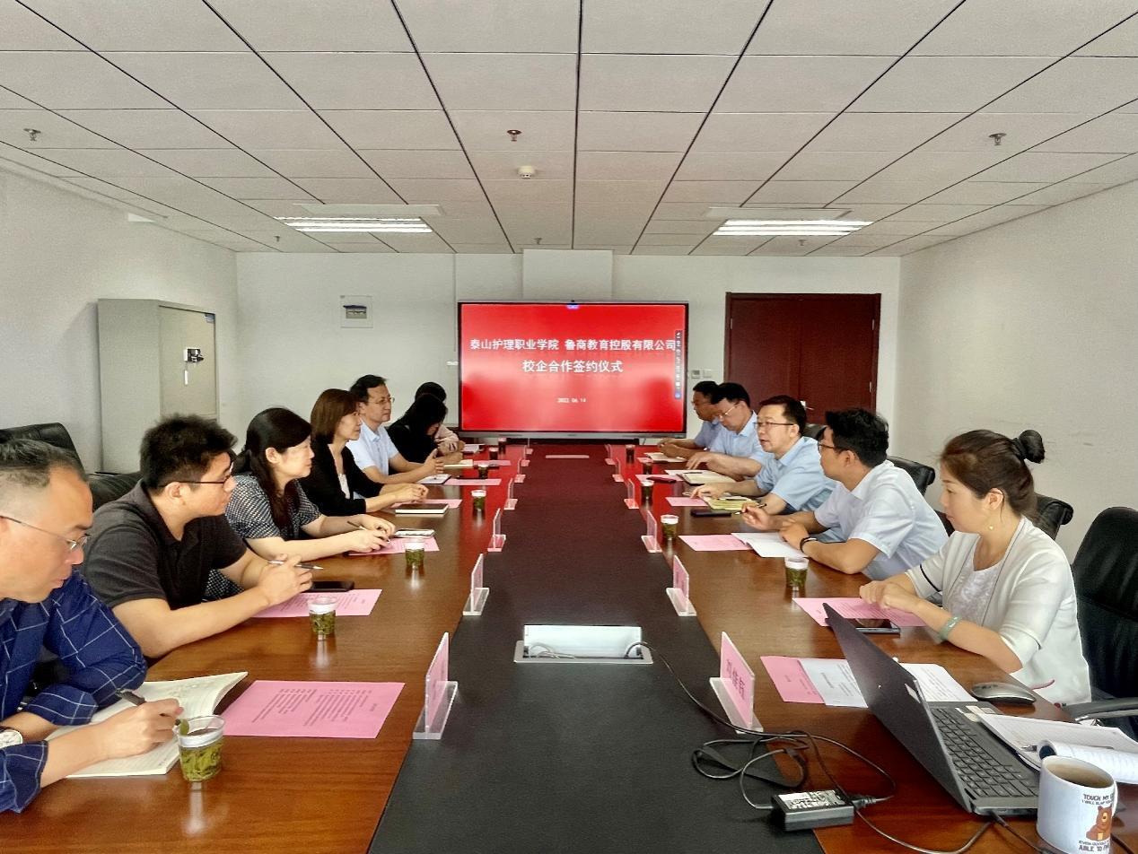 6月14日,教育控股與泰山護理職業學院舉行校企合作簽約儀式。泰山護理職業學院黨委委員、副院長荊麗艷,教育控股總經理李學軍,銀座幼教黨總支委員、總園長孟凡庸出席儀式,教育控股副總經理鄭振豹主持。