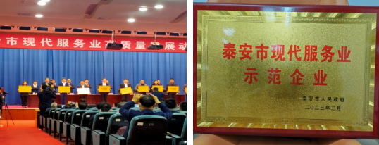 3月28日,在泰安市發改委主辦的“全市現代服務業高質量發展動員大會”上,銀座泰安商城店獲得“泰安市現代服務業示范企業”榮譽稱號。泰安市委書記、市人大常委會主任楊洪濤,市委副書記、市長李蘭祥出席活動并為獲獎企業頒獎。